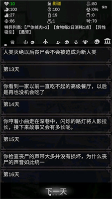 虽然没有写实的画面场景,但是玩家可以自由选择剧情,选择主角人物的性格特点,从末日的第七天开始冒险,每一天都有完全不一样的剧情,将带给我们完全不一样的感受。